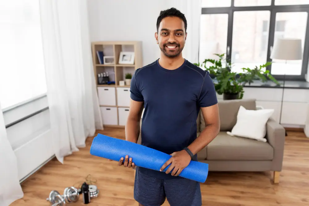 Yoga encourages relaxation and mindful breathing.